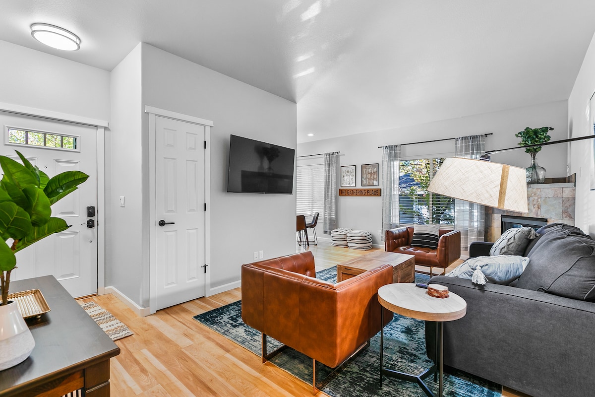 LOCATION CAN'T BE BEAT Meticulously Clean Modern Space Private apartment STEPS AWAY FROM THE DESCHUTES RIVER AND A 5 MINUTE WALK TO THE SUMMER SHOWS AT THE AMPHITHEATER A PERFECT BASE FOR WINTER AT MT. BACHELOR NO-CONTACT EASY CHECK-IN OLD MILL LOCATION IN THE MOST DESIRED NEIGHBORHOOD IN BEND Perfect setting in the heart of Bend between downtown & The Old Mill District Walk to fine dining, boutiques, galleries, theaters, coffee and the Deschutes River Trail steps away