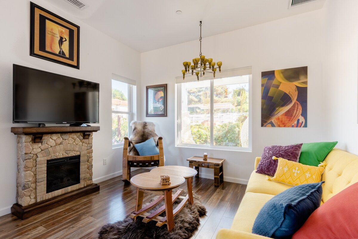 Get comfortable and enjoy plenty of extra room in this spacious casita. This large space is family friendly with plenty of room for two adults and one or two young children. It features a queen bed, futon, kitchenette, eating area and attached bath. Stroll the 4.36 acre property, enjoy the views of neighboring vineyards and balloons floating above. Walk, drive or Uber to dozens of nearby wineries. Enjoy the sights, sounds, restaurants, and shopping in Old Town Temecula. (Permit #000256