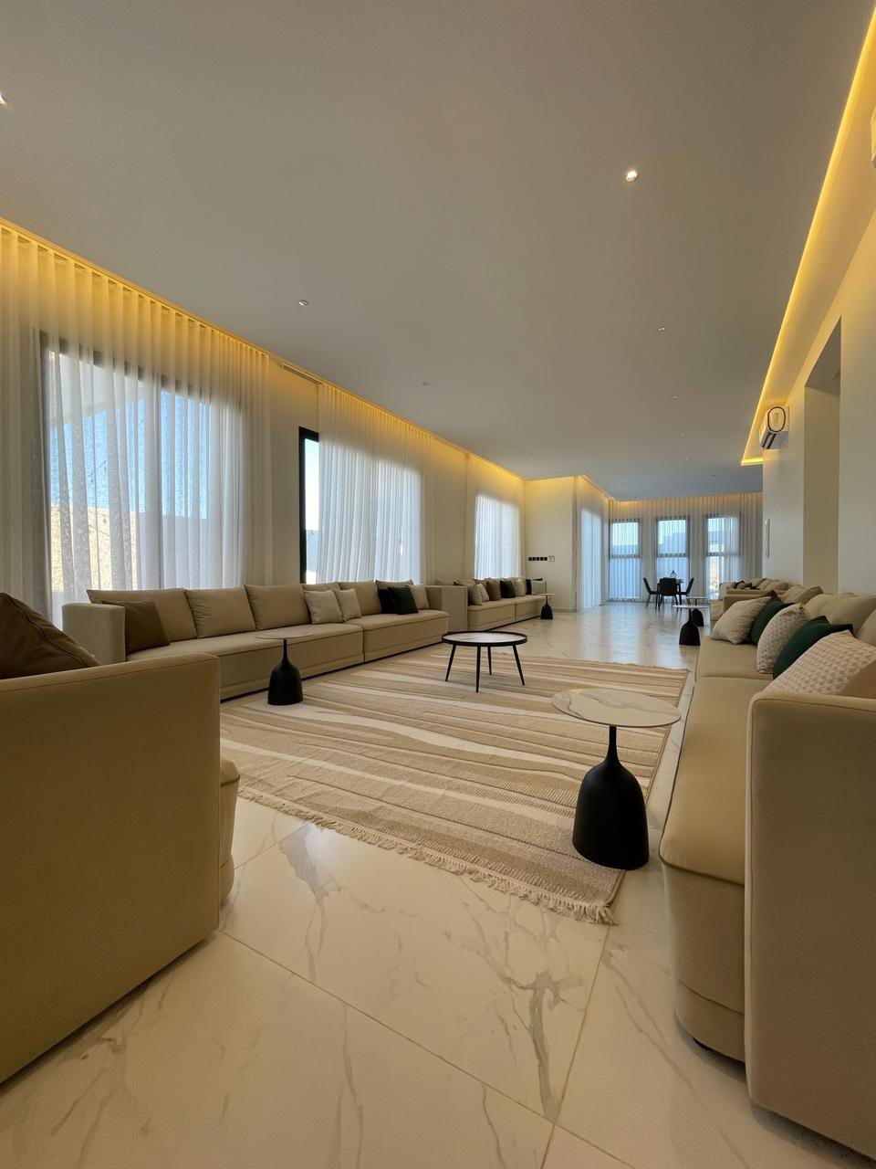 Arjan Park Resort is your first destination for luxury and enjoyment Arjan Park Resort is located in Riyadh, in Al-Rimal neighborhood, after Awaidah roundabout. It is about 20 km away from the airport and Riyadh front. It consists of 8 hotel villas and a luxurious event hall with an independent gate. The resort has a private entrance with green spaces, fountains, aesthetic corridors and a golf cart. The resort is completely private and modern in design and fully furnished with luxurious new furniture. It has green areas of various sizes that include a variety of modern outdoor seating. Arjan Park Resort is one of the finest resorts in Riyadh.
