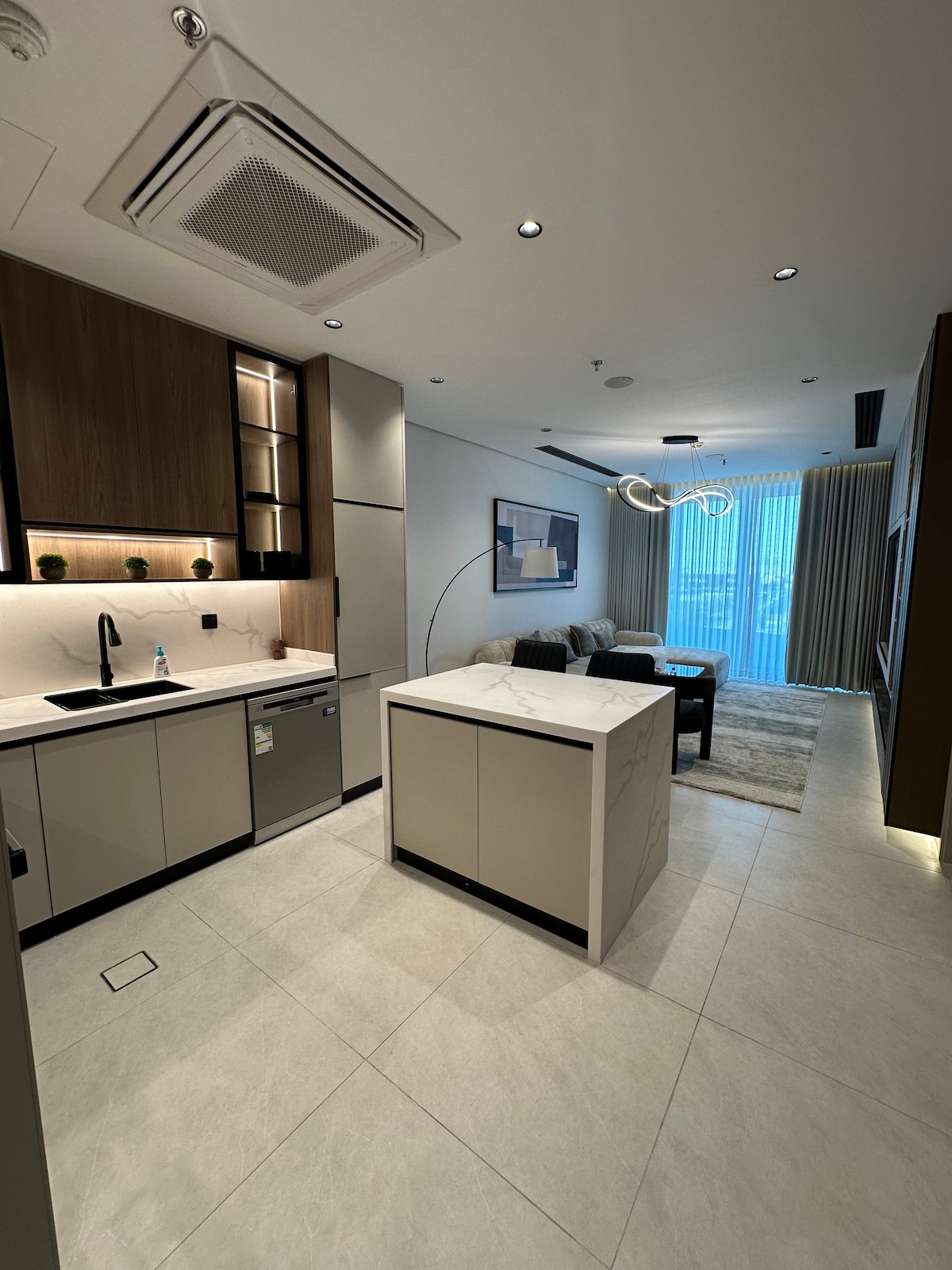 A luxurious apartment, equipped with modern furniture and all amenities for comfort and relaxation. It consists of two main bedrooms and Free extra bed, 4 bathrooms and a living room that fit up to 6 people, and a designated room for laundry, in addition to a full equipped kitchen, The apartment also gives you access to the Gym, swimming pool, lounge and meeting room.