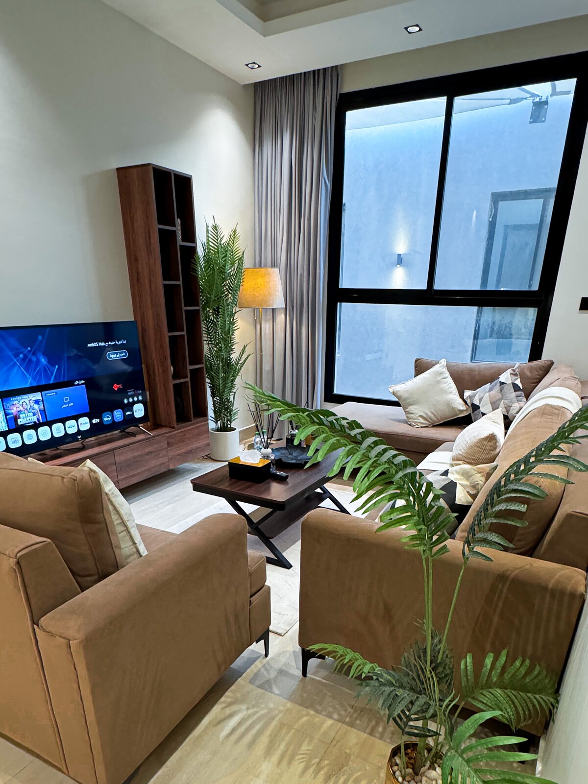 Welcome to Rikal Stay – Where Comfort Meets Elegance Experience refined living in this luxury three-bedroom apartment located in an exclusive full-service compound in Riyadh’s prestigious Al- Narjis district. The compound offers a blend of hotel-style amenities and residential comfort, making it ideal for families, business travelers, and long-term stays.
