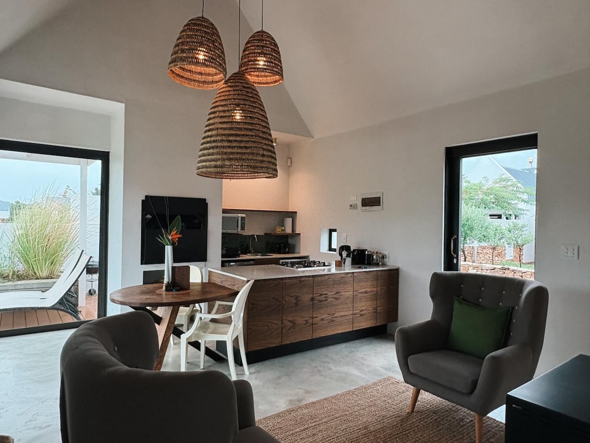 The Fairy Flycatcher is part of LUCKY CRANE VILLAS - a collection of contemporary meets country villas in the picturesque village of McGregor with the best views in town. Romance rules in this one-bedroom sanctuary for a single guest or a couple. Complete with outdoor bath and an intimate natural pool and nestled in an olive orchard with uninterrupted views, this is honeymoon-perfect!