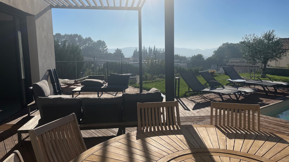 On the peaceful heights of Rochefort-du-Gard, Villa Isahey welcomes you between scrubland, vineyards and infinite sky ☀️ Breathtaking view, heated mirror pool, Mediterranean garden, petanque court, air conditioning in every room. 3 prestigious suites, 2 bedrooms with shared bathroom. A refined cocoon to enjoy privacy as well as shared moments, 10 minutes from Avignon, ideal for discovering the treasures of the region. Unforgettable Provençal break guaranteed 🌼