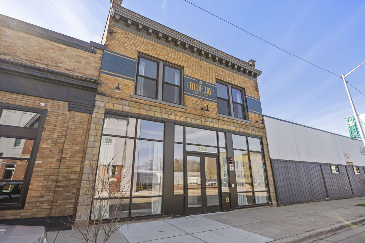 Welcome to The BlueJay, located in the Bridge Street Entertainment District of downtown Grand Rapids. This spacious and stylish suite blends vintage charm with modern design, offering luxurious comfort and lively originality. Please note this room does not have a window. Book now and enjoy the trendiest spot in town, just a short walk from nightlife, bars, and restaurants! Interested in reserving all five king suites and event areas? Visit our website for more details!