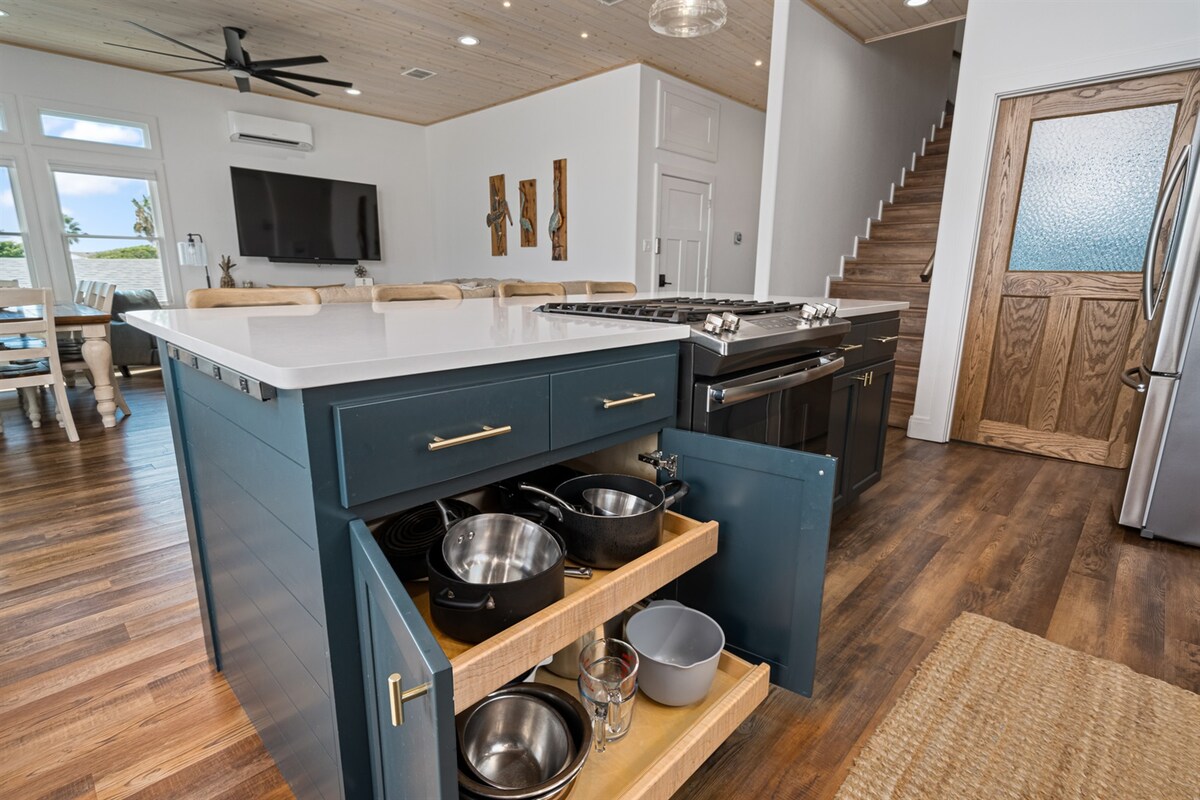 Kick back and relax in this calm, stylish space. With canal access you can enjoy the bay breezes while dining on the back deck. You can stare out at the water while on a zoom meeting or drop a line into the canal to try to catch your dinner. If fishing for glorious sunrises and sunsets is your preferred catch, the views of Salt Lake are yours for the taking from the back deck. Enjoy the breeze off the canal on a hot summer day with an outdoor shower to rinse off. Relax and stay a while.