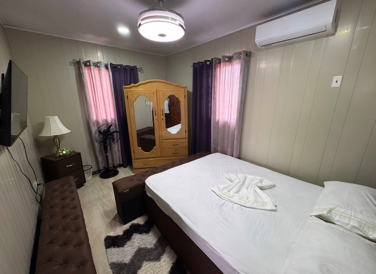 Welcome to your modern 2-bedroom escape in Linden, Guyana. This stylish space offers AC, Wi-Fi, smart TV, a fully equipped kitchen, and secure parking. Ideal for business or leisure, enjoy comfort and convenience in a quiet, safe neighborhood just minutes from local shops, restaurants, and nature trails. Perfect for families, couples, or solo travelers seeking a relaxing stay.