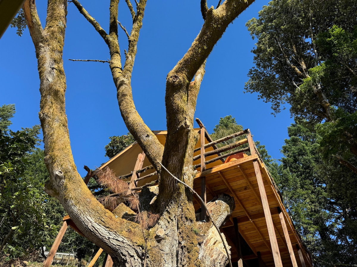 Welcome to our Mountain Treehouse Tent! 16x20 wall tent on raised platform with large deck with lake and forest views. Relax in the cedar sauna complete with cold plunge and outdoor (warm!) shower. Fresh mountain glacial spring water. Brand new outhouse 2025! Wood stove inside the tent for chilly evenings. Hike up to the top of the mountain for spectacular Flathead Lake views. Starry nights and wildlife galore. Please note I have additional listing on the same property if you need two tents⛺️🏕