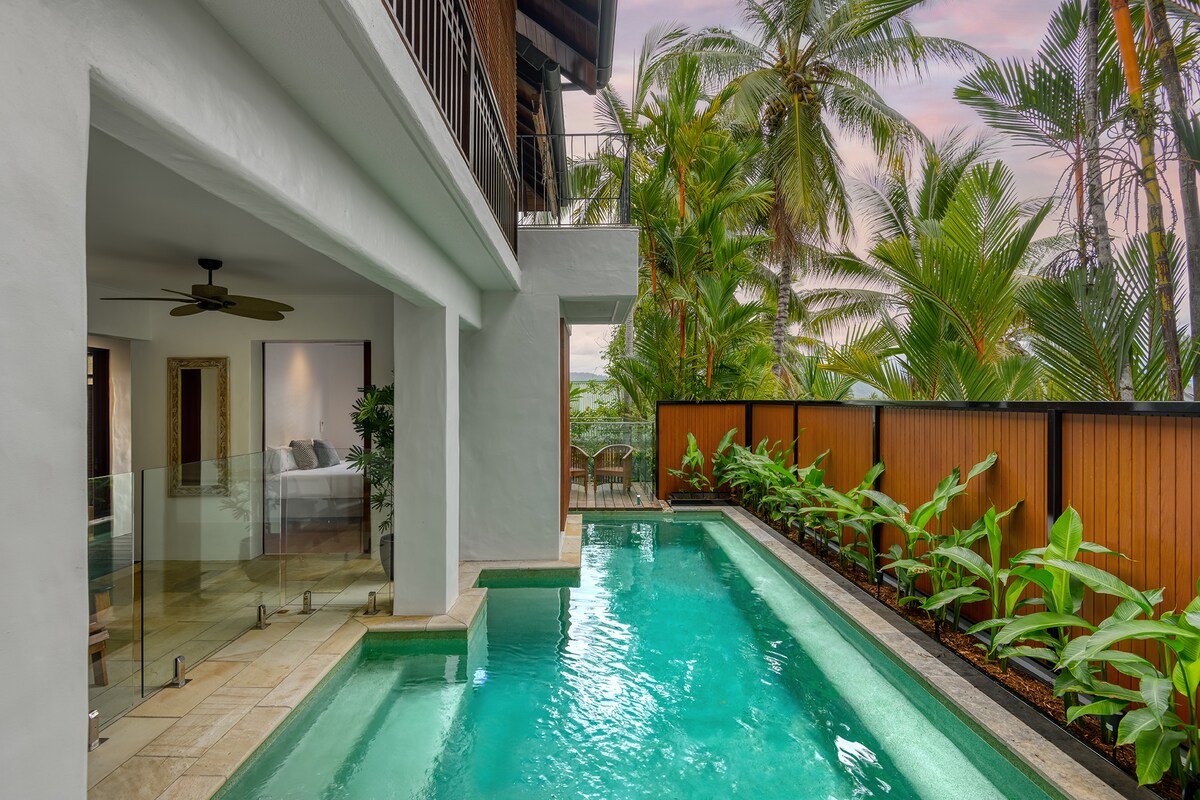 Situated amongst lush tropical palms and overlooking the pool, Wanderer self-contained unit offers tropical resort living with all the comforts of home. Just a short 15 minute stroll to the iconic Four Mile Beach and the heart of Port Douglas and with access to the Great Barrier Reef and the Daintree Rainforest right on your doorstep, Wanderer is the perfect spot for your North Tropical Queensland escape.