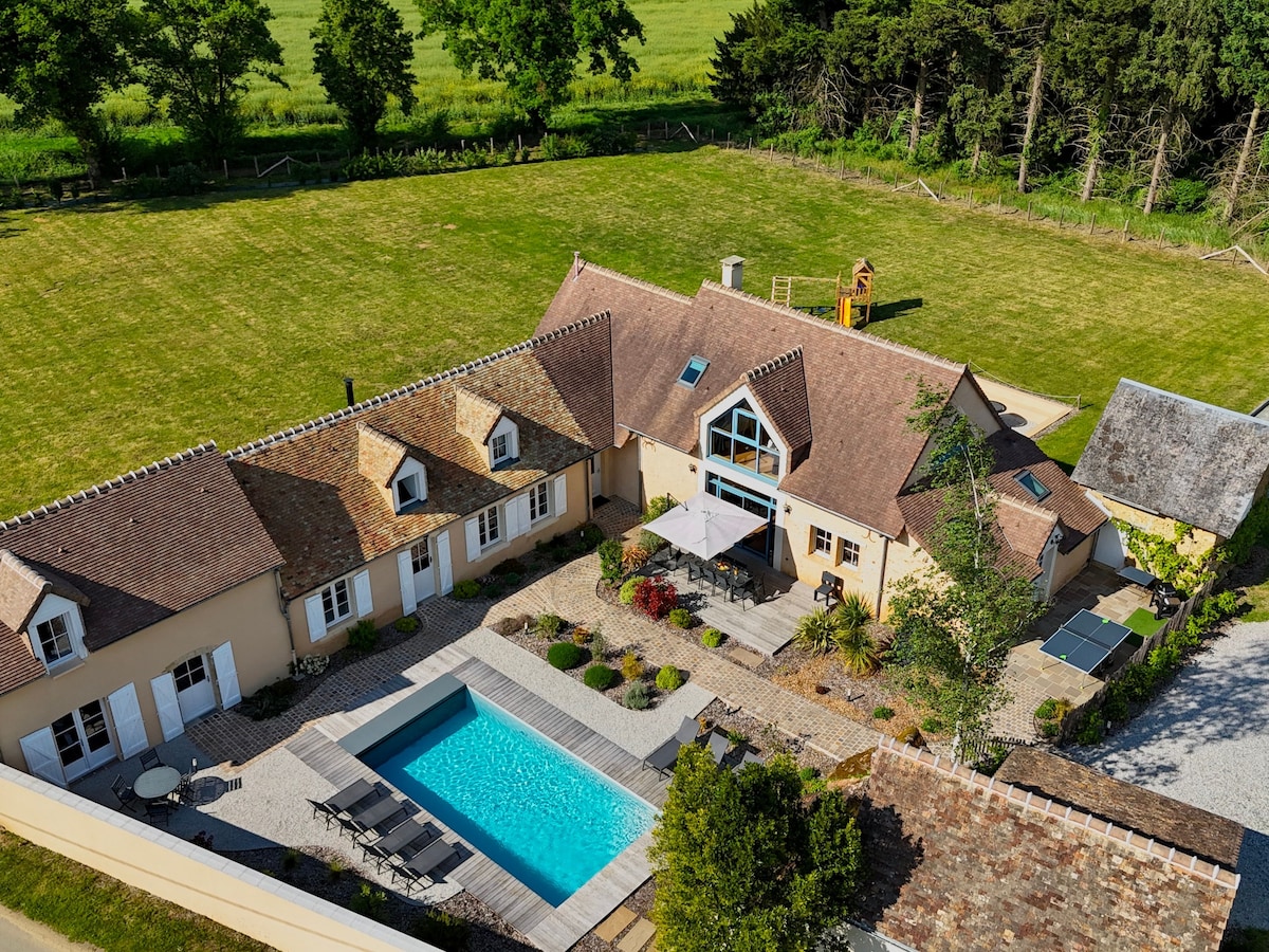 Architect's house 20 minutes from the 24 Hours circuit, in the heart of the Sarthe countryside. A quiet and exotic idyllic place to spend good times with family and friends. Surrounded by century-old trees that will delight your eyes. Guests can enjoy the pool in all seasons without leaving the house. Ideal for unwinding. A room accessible to people with disabilities.