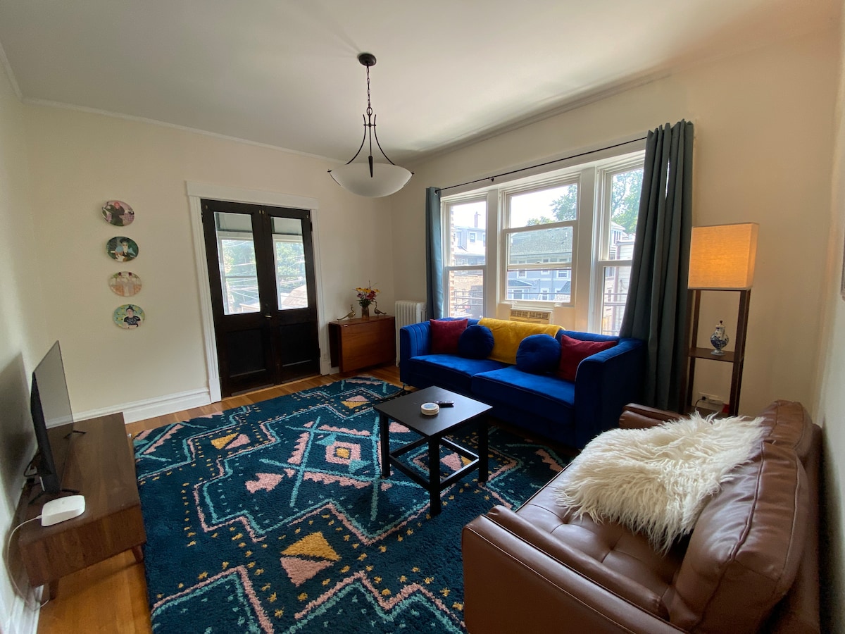 Very nice and updated condo in the heart of Lincoln Square! Lots of fun design elements and artwork await. This sunny condo is in the 2nd floor of a 2-flat building with friendly neighbors. My partner and I live on the first floor. You can walk to all that Lincoln Square has to offer! The Brown Line (Western stop) is just 2.5 blocks away for an easy commute to downtown!