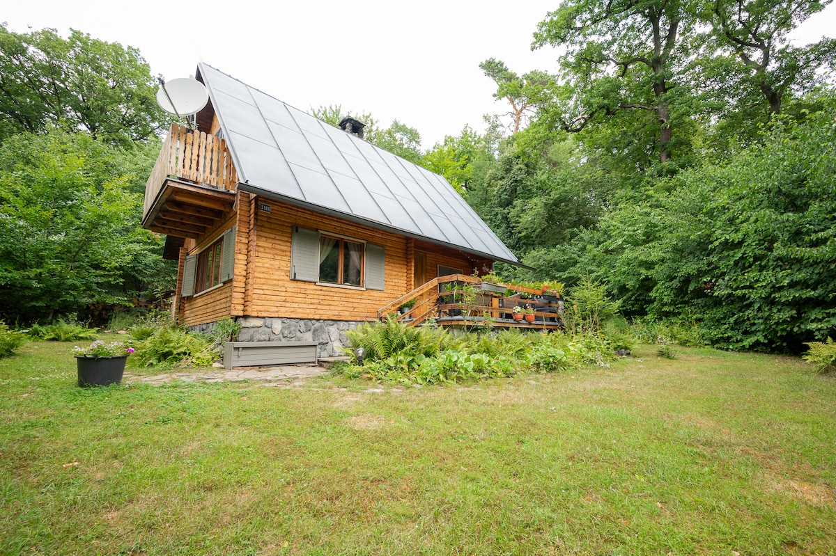 Our wooden house was made by my grandfather 50 years ago. It consists from living room with fire place, folding sofa bed for 2 persons, small kitchen, bathroom and on the first floor there is one bedroom with a king bed and 3 single beds. During your stay in our wooden hut you could see squirrels, forest birds, stag beetle, salamanders, hedgehogs, and different animals... deers come for visit sometimes. It is located in recreational area of Harmónia near Modra.