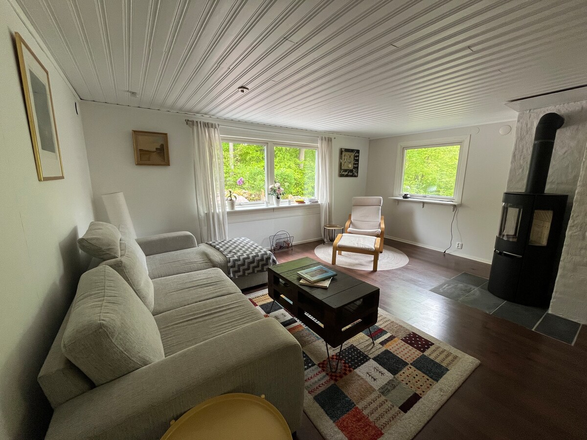 The small cottage in my garden is only available for short-term rental, maximum 45 days. It has 23 m2: bedroom, living room with kitchenette and toilet + shower. The cottage is not large but clean and pleasant. In the bedroom, there is a bed 120 cm and in the living room a 90 cm sofa/bed. The cottage is best suited for one person, but it is also possible to accommodate two guests in it.