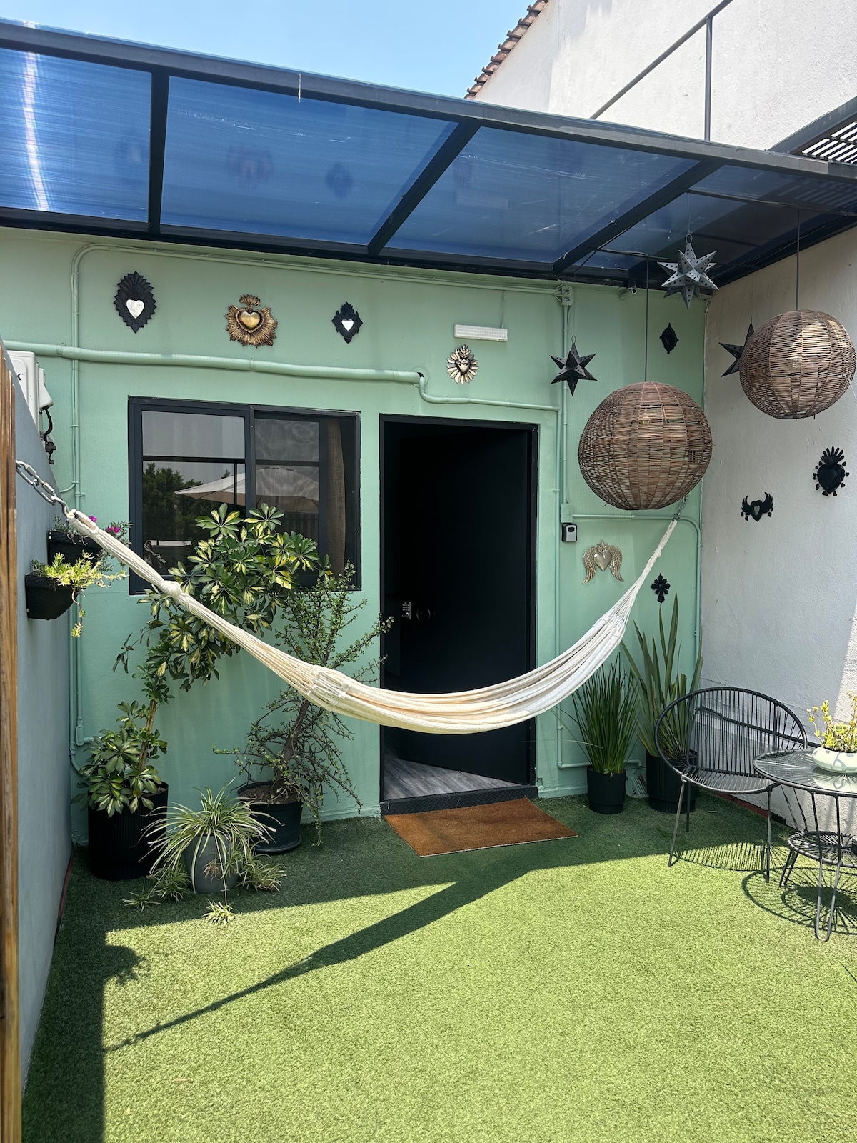 Cozy and bright loft in Escandón with a private terrace surrounded by plants. Perfect for relaxing, working, or enjoying a quiet getaway. King-size bed, fully equipped kitchen, dedicated workspace, and an indoor hammock , perfect for reading or resting. Safe and central location, just minutes from Condesa and Chapultepec. Access is through shared areas of our home via a narrow staircase. Warmth, privacy, and thoughtful details to make you feel at home. We’d love to host you!