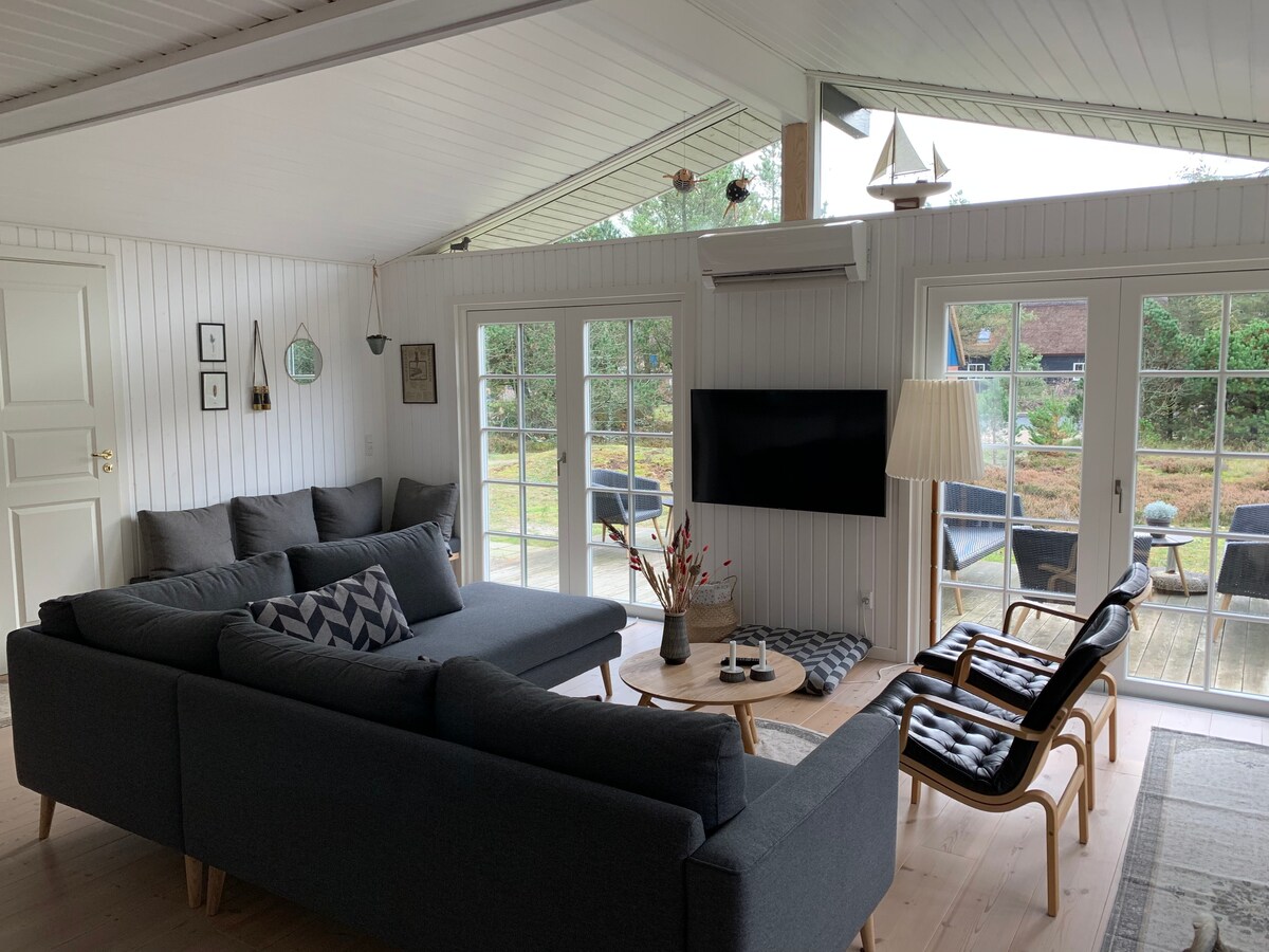 The house is 102 m² and is located on a 2500 m² plot overgrown with heather and pine trees in an absolutely quiet area. A large covered terrace facing south gives you the opportunity to spend many pleasant hours there. Free Wi-Fi (200 M/B) Sauna cabin for 6 people. Wellness :-) The house is very popular. We get great reviews. “We really enjoyed our stay at Margit's place: The house is superbly equipped and definitely offers the feel-good factor.” L