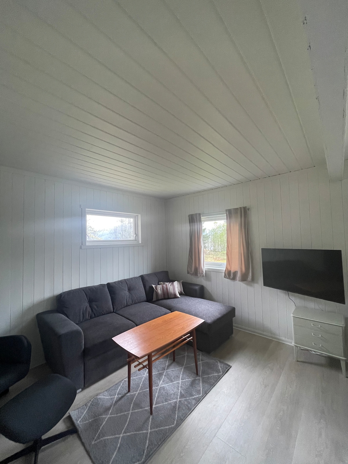 This is the place to find peace in Oppstryn. Small, cozy cottage with room for two people. Open kitchen/living room solution with armchairs and seating area. Simple kitchen with oven/hob, sink, coffee maker, kettle and fridge. Modern bathroom with toilet and shower. Bedroom with two separate beds. Short distance to the boathouse where you can swim or rent a sauna. Possibility for many nice trips in the nearby area IG: Aarneset