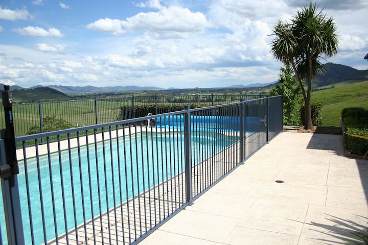 A luxurious 5 bedroom home situated on 30 acres of rolling hills. It has one of the best views in the Gloucester district. Each bedroom is air-conditioned with its own bathroom. It comes with a pool and fireplace. Less than 10 minutes from town and is at a gateway to the world heritage listed Barrington Tops