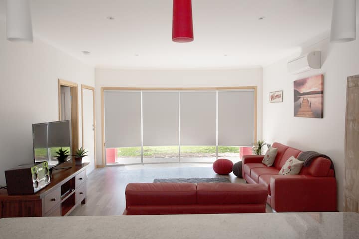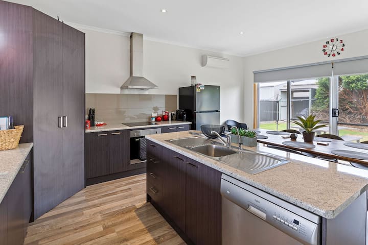 A Fabulous house built for long lasting holiday memories. Plenty of room for the kids to kick the footy, ride their bikes or fly a kite or run without a care in the world. For the wet days there are plenty of board games, cards, or DVDs that they can watch in their own room. For the Adults it is quiet enough to read a book or magazine or drink a couple of glasses of wine while solving the problems of the world.