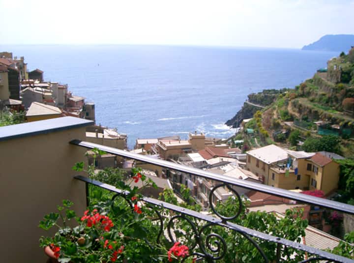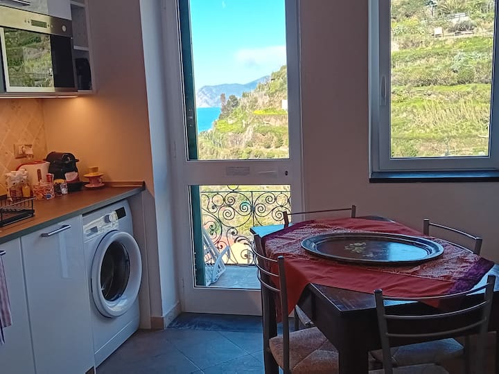 This charming and well-furnished apartment for two features a small equipped balcony with table, two chairs, and automatic awnings, amd it offers stunning panoramas of the sea, Manarola village, and the traditional terraced vineyards.