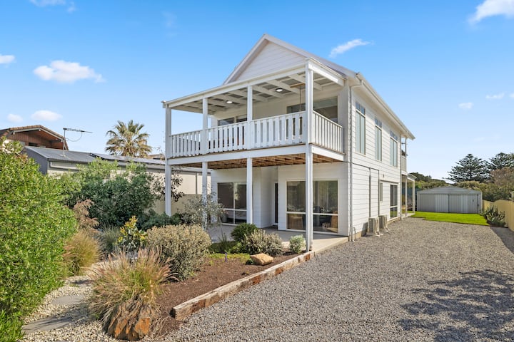 A refined coastal retreat awaits, nestled just opposite the breathtaking Silver Sands Beach. This elegant five-bedroom sanctuary is crafted for families and friends who seek both sophistication and comfort. From the moment you step inside, you’ll feel the harmony between modern style and the tranquil rhythm of beachside living, designed to foster meaningful connections and unforgettable moments.