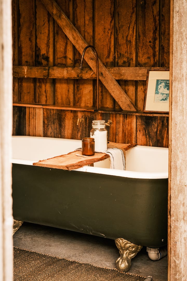 We’re James and Liz — nature lovers, hikers, foodies, red wine enthusiasts and proud op-shop fanatics. Myrtle Creek Farm has been our passion project, built slowly with care and sustainability at its heart. Much of what you’ll find here is recycled, repurposed, or grown on the land itself. We love cooking, living gently, and embracing the rhythm of slow living — and we can’t wait to share that experience with you.