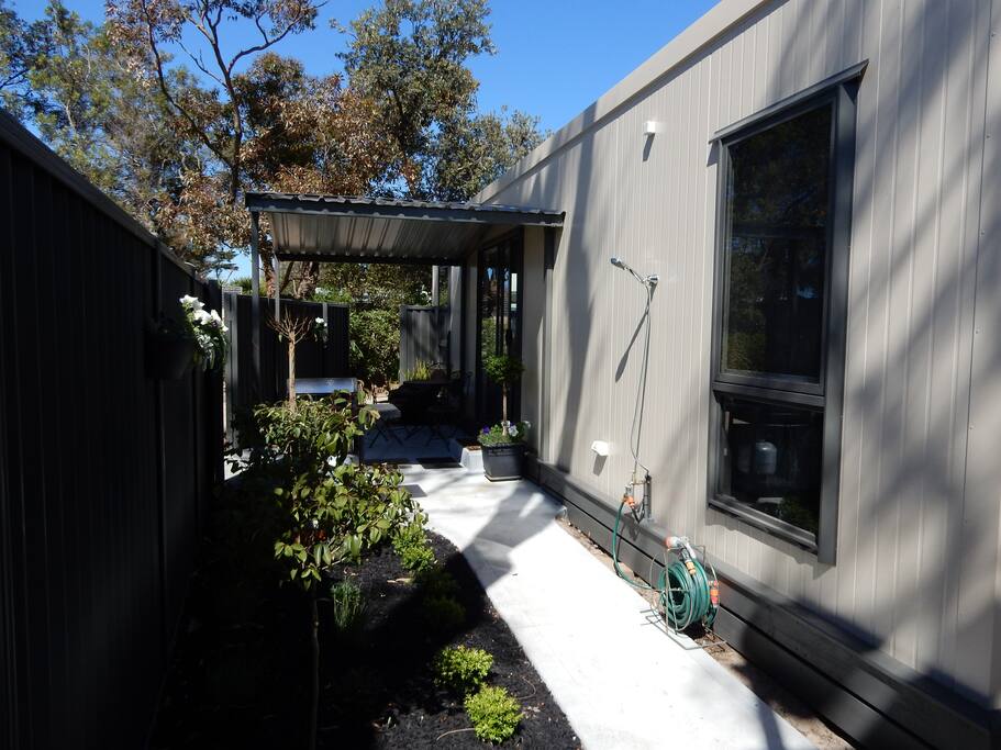 Light filled cabin right near the beach with beach access and out door shower. Across the road from shops and restaurants.Perfect for families or couples.