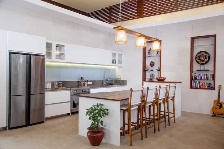 All guests have full access to the villa, including cable TV in living room; stereo amplifier & speakers in the cabana; and the kitchen, which is equipped with cutlery, plates, pots, pans, a rice cooker, blender, industrial gas oven/gas cook top, hot/cold water cooler, sandwich press, toaster & a microwave etc etc.