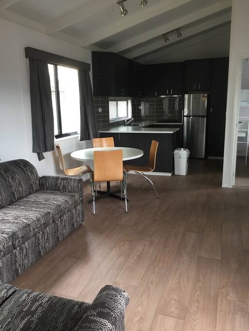 Fully equipped kitchen (microwave, full fridge, cooker). Table/chairs.