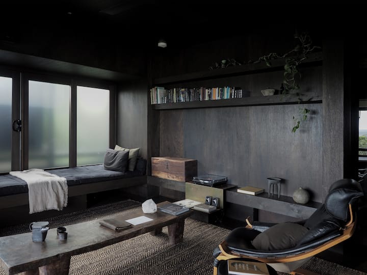 Designed by Frank Macchia to challenge, nurture and inspire, this home offers a very unique get away experience. From the large raw timber gates, the external connecting deck and the open air shower with mountain views, this private sanctuary encourages calm, healthy, connected living.
