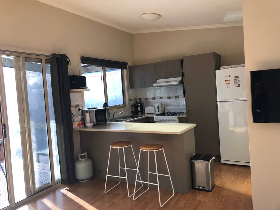 Luxury two bedroom cabin. Large open plan living space, and large alfresco entertaining area with built in blinds for those colder evenings. Good size queen bedroom and additional bunk room, with a pull out sofa in the lounge. Fully furnished kitchen with everything you will need for a weekend away. Situated in Dromana Holiday Village with access to an indoor pool, outdoor pool, tennis courts and games room, and less than 2 kilometres to Dromana foreshore. Home away from home.