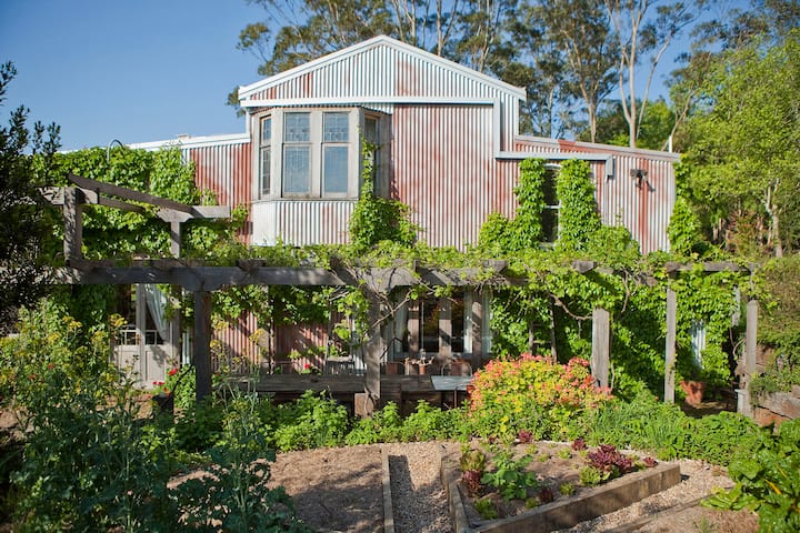 The Shed is a converted machinery shed, which has been lovingly and creatively transformed into a luxurious eco-haven accommodation, using reclaimed and recycled materials.