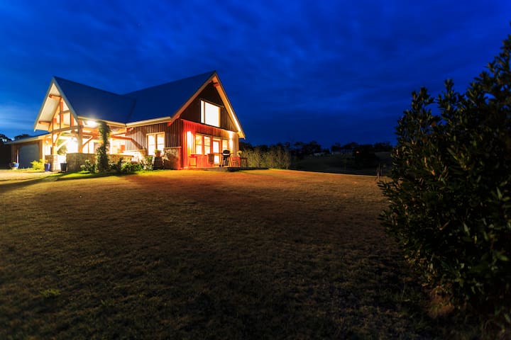 Experience sustainable living in this magnificent "off grid" home, lovingly handcrafted by the owners from timber and stone.