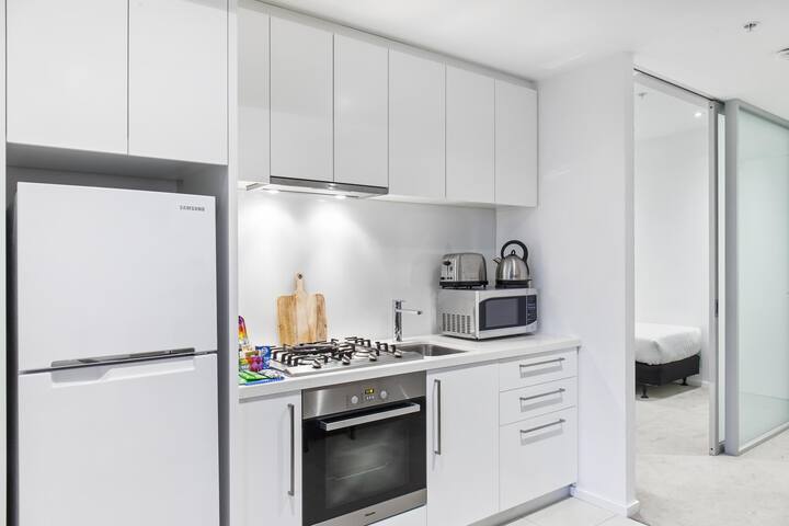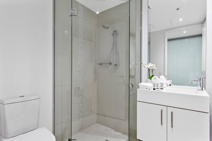 Get the five-star hotel experience without the bill by staying at this modern apartment overlooking the Melbourne CBD. The list of amenities is truly impressive. Not only that, but it's a short walk to all of M…