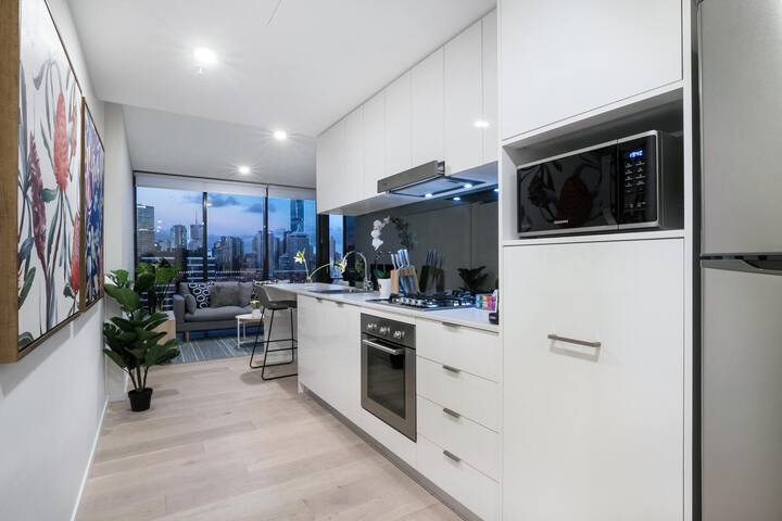 This is the whole package. A contemporary apartment with sweeping 180-degree views of the river and Brisbane Skyline. New appliances and furniture, a marble bathroom and tasteful design throughout. Unbeatable c…