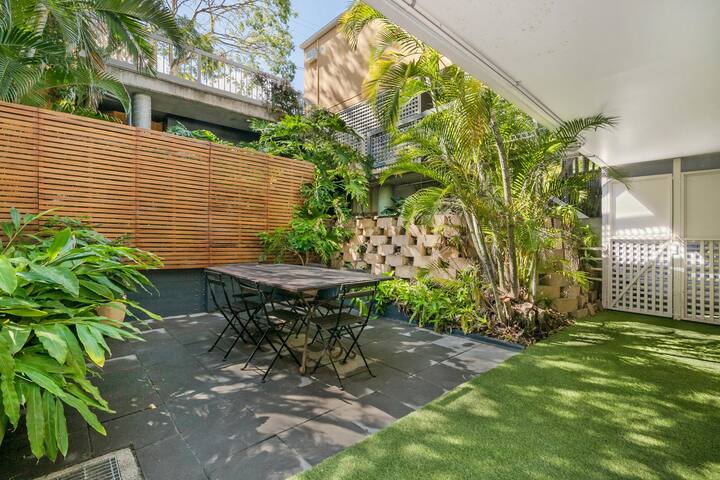This modern two-bed townhouse will be perfect for families and groups who want to see what makes Brisbane special. With lots of outdoor space provided by two courtyards and a lovely pool, it will let you live t…
