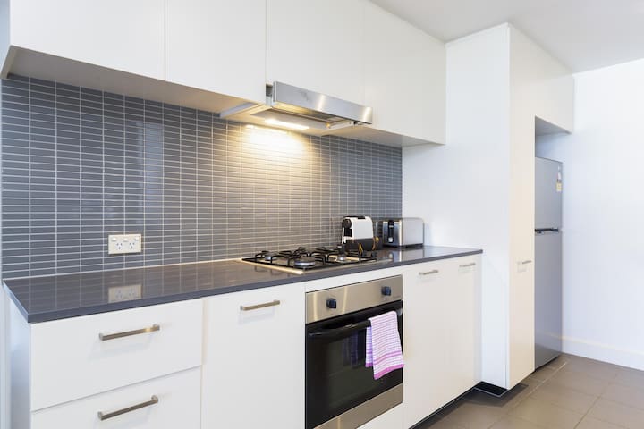 The convenience of this chic two-bedroom apartment is difficult to beat. Located in the suburb of Wolli Creek, it's five minutes from the airport and 10 minutes to the city on the train. The neighbourhood is fi…