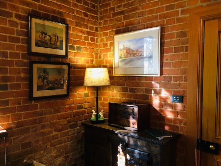 I live in the village of Longford and my husband and I have recently restored the 1835 old Stable into unique accomodation. The building was derelict when we first found it. The ceiling beams in the Stable were fixed by the mortise and tenon joints and the whole structure of the roof sat on the convict brick walls with nothing anchoring it down, just sitting on top for all those years. Amazingly the old stable has sat on foundations of simple bluestone with lime mortar for 160 years. It has been such fun restoring it and a joy working with and recycling the old original timbers, turning them into something special.