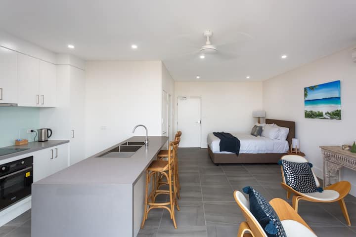 Welcome to the Ishtar Studio Apartment – a beautifully styled, centrally located retreat in the heart of Huskisson. Ideal for solo travellers or couples, this modern studio offers comfort, convenience, and easy access to everything this vibrant coastal town has to offer. With a private balcony, modern kitchen, and inviting living space, it’s the perfect base for your next Jervis Bay escape.