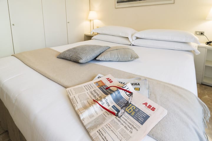 One-bedroom apartment serviced and carefully furnished; living room with dining area overlooking the back garden, 3-seater sofa and flat screen TV and complimentary high speed WiFi internet; open-space fully equipped kitchen with fridge, freezer, microwave oven and washing machine; bedroom with double bed, ample closet space, balcony overlooking back garden; windowed ensuite bathroom with bathtub, shower and bidet; central heating and air conditioning, double casement windows and marble floors.
