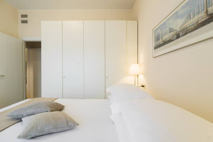 One-bedroom apartment serviced and carefully furnished; living room with dining area overlooking the back garden, 3-seater sofa and flat screen TV and complimentary high speed WiFi internet; open-space fully equipped kitchen with fridge, freezer, microwave oven and washing machine; bedroom with double bed, ample closet space, balcony overlooking back garden; windowed ensuite bathroom with bathtub, shower and bidet; central heating and air conditioning.
