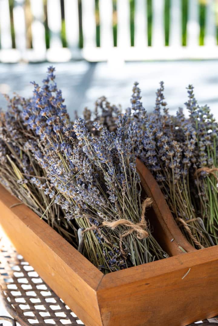 Toiletries and towels are provided, and you can also sample some of our beautiful products made on site with lavender essential oil! We do not over-fragrance towels and sheets, to avoid using artificial fragrancing.