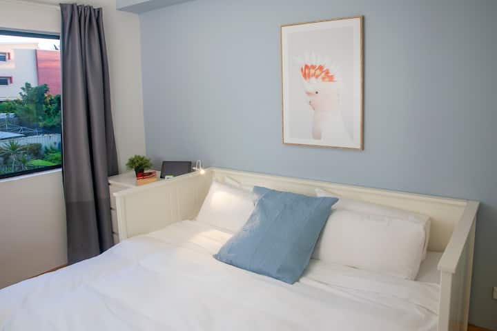 Tucked away at the end of a quiet and tranquil cul-de-sac, our lovely 2 bedroom apartment offers direct access to the Cooks river path and cycleway. Relax on our large, private and north-facing balcony overlooking the parklands and cycle ways, giving you a sense of immersion within the stunning botanical surrounds.