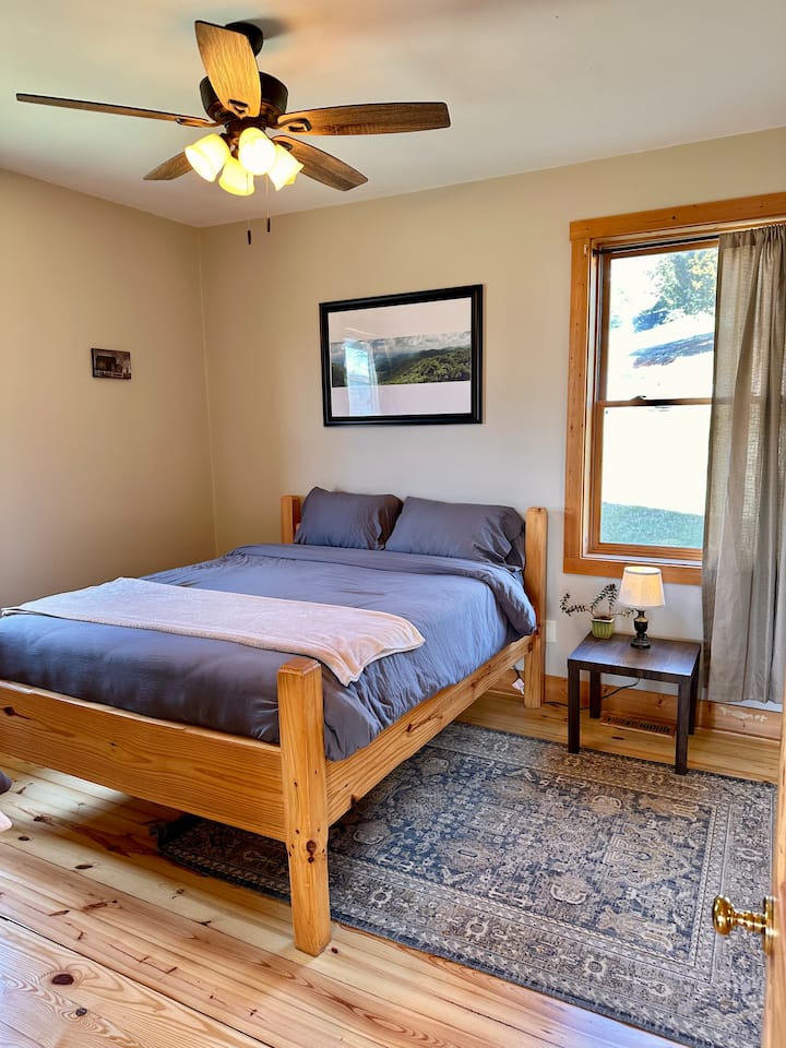 -Accessibility: For our guests with limited mobility and needing to avoid stairs, our home offers a main-level bedroom conveniently located off the living area with a private bathroom. Easy entry from the driveway into the main level of the house. You can park at the top of the driveway, and there is a small set of 3 steps leading into the main (middle) level of the house.