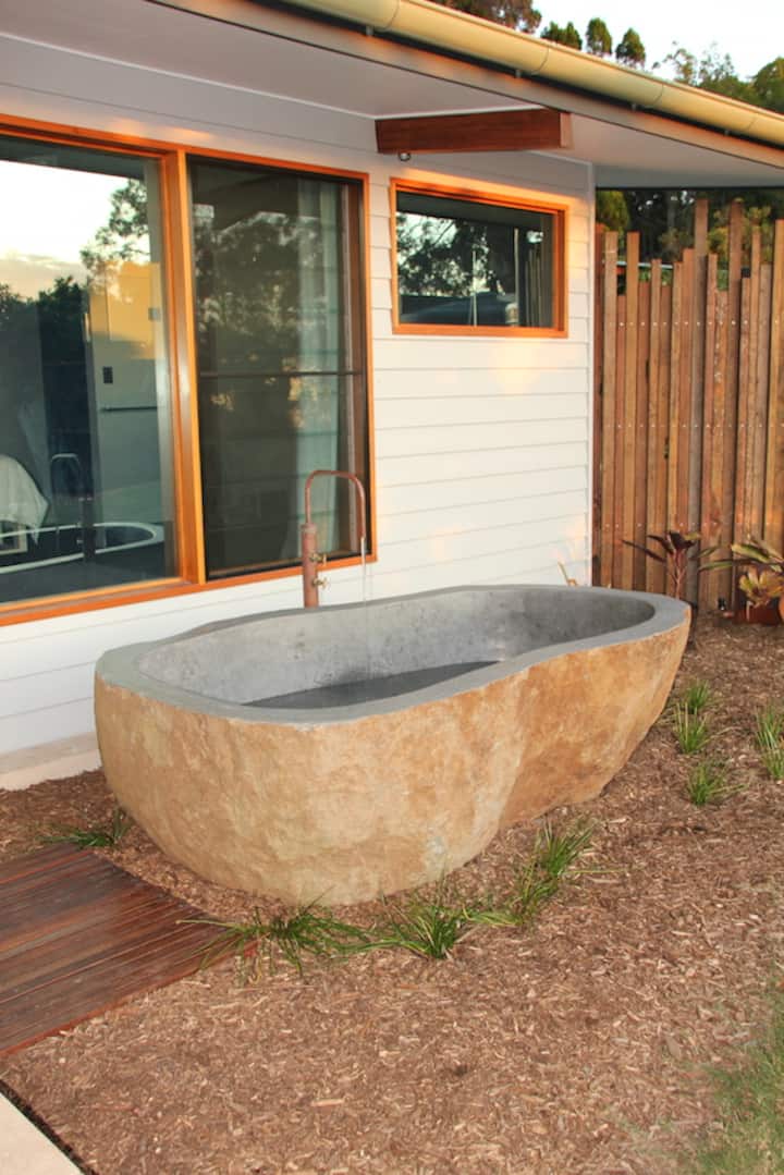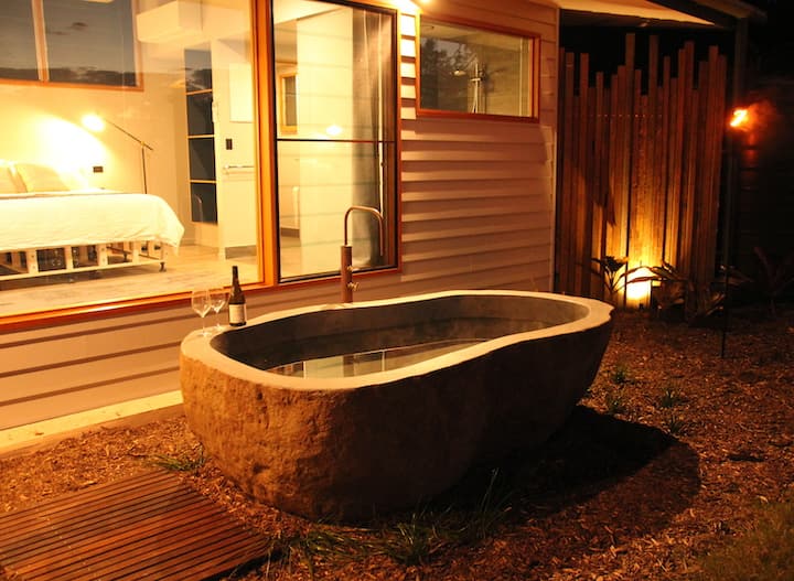 I live on our beautiful five acre bushland property with my husband and our two kids. We've worked hard to renovate the cabins on our property so we can now share them with people through Air BnB. We're always on-site and happy to talk to guests, or help them out if they need anything, but we also totally understand that people are coming to our space to relax, unwind and escape.