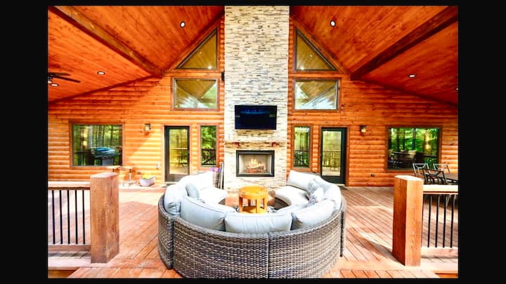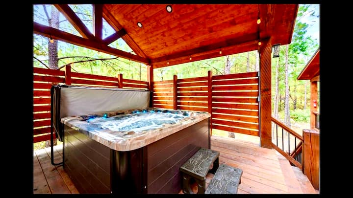 Inner Peace cabin is the ultimate escape destination with luxury in mind. From luxurious bedding in master suites to spacious elevated deck, top quality furniture, and oversized hot tub surrounded by ambiance lighting. During the daytime you can enjoy peaceful nature all around grilling up your favorite meal. At night it is your ultimate entertainment destination soaking in the hot tub watching TV outside, or gathering by campfire . The experience is unforgettable.