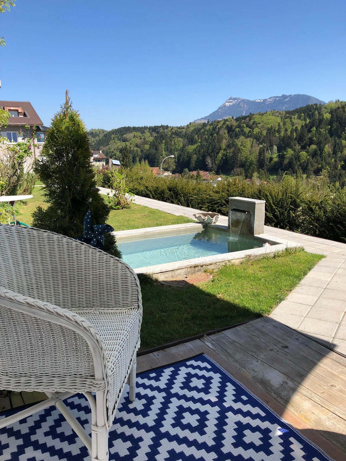 Nestled in a small swiss village 15 mins drive by car from Lucerne and Mount Rigi, this self-contained apartment connected to our family house is a perfect place to base yourself when exploring Central Switzerland. As well as the bedroom, dining area, fully functioning kitchen and walk-in shower, you also have your own outdoor lounge area, ultra-fast fiber internet, TV box, Nespresso machine .....and if you like fresh eggs for breakfast from one of our 8 hens!
