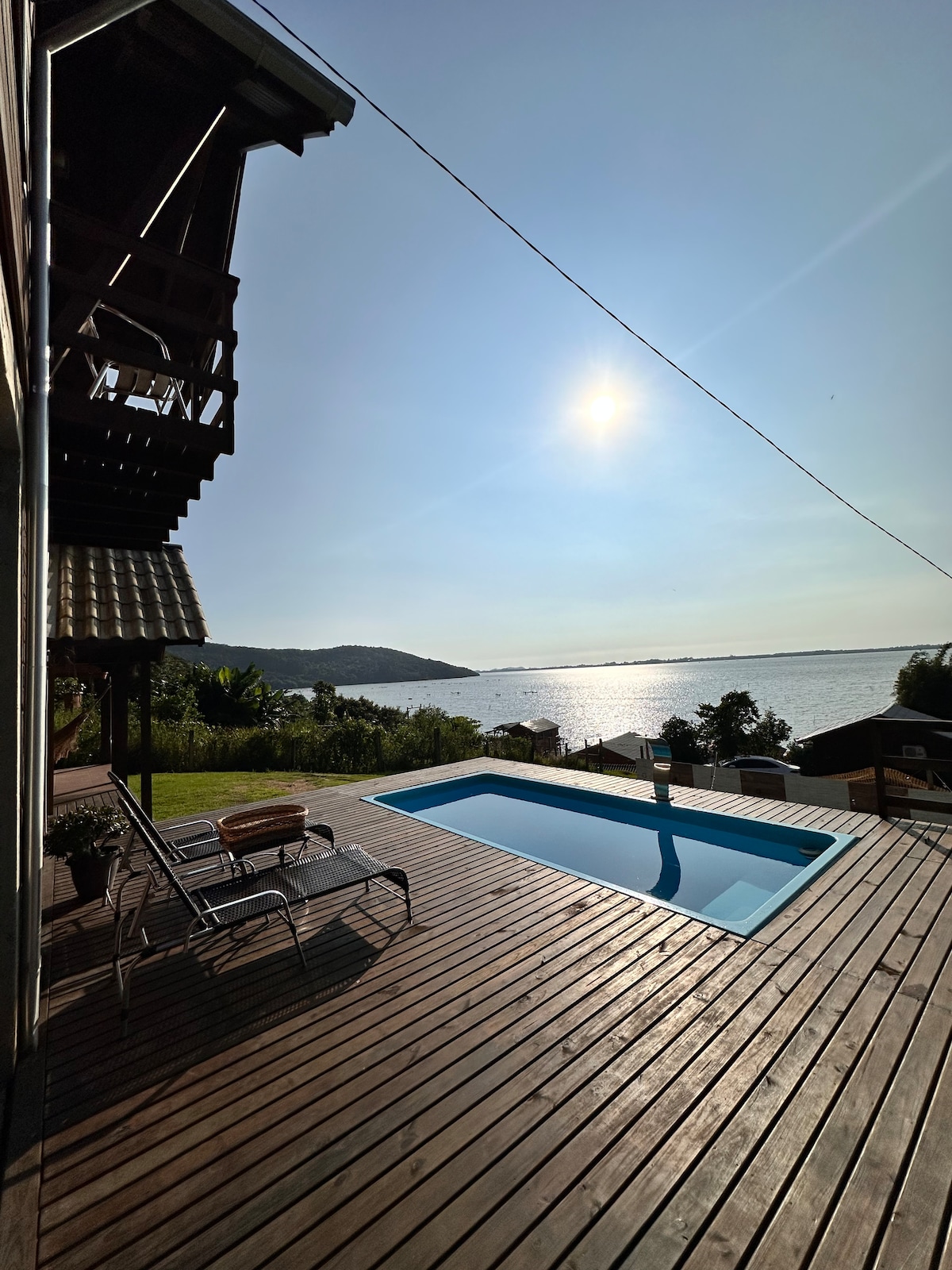 Experience unforgettable moments in a cozy chalet, perfect for those seeking rest, comfort and contact with nature. With an enchanting view of the lagoon, the space was designed to provide a unique experience of relaxation and tranquility. The chalet has an equipped kitchen, fireplace, cozy living room, balcony with a view, and a complete leisure area: private pool to cool off and kayak ride included!