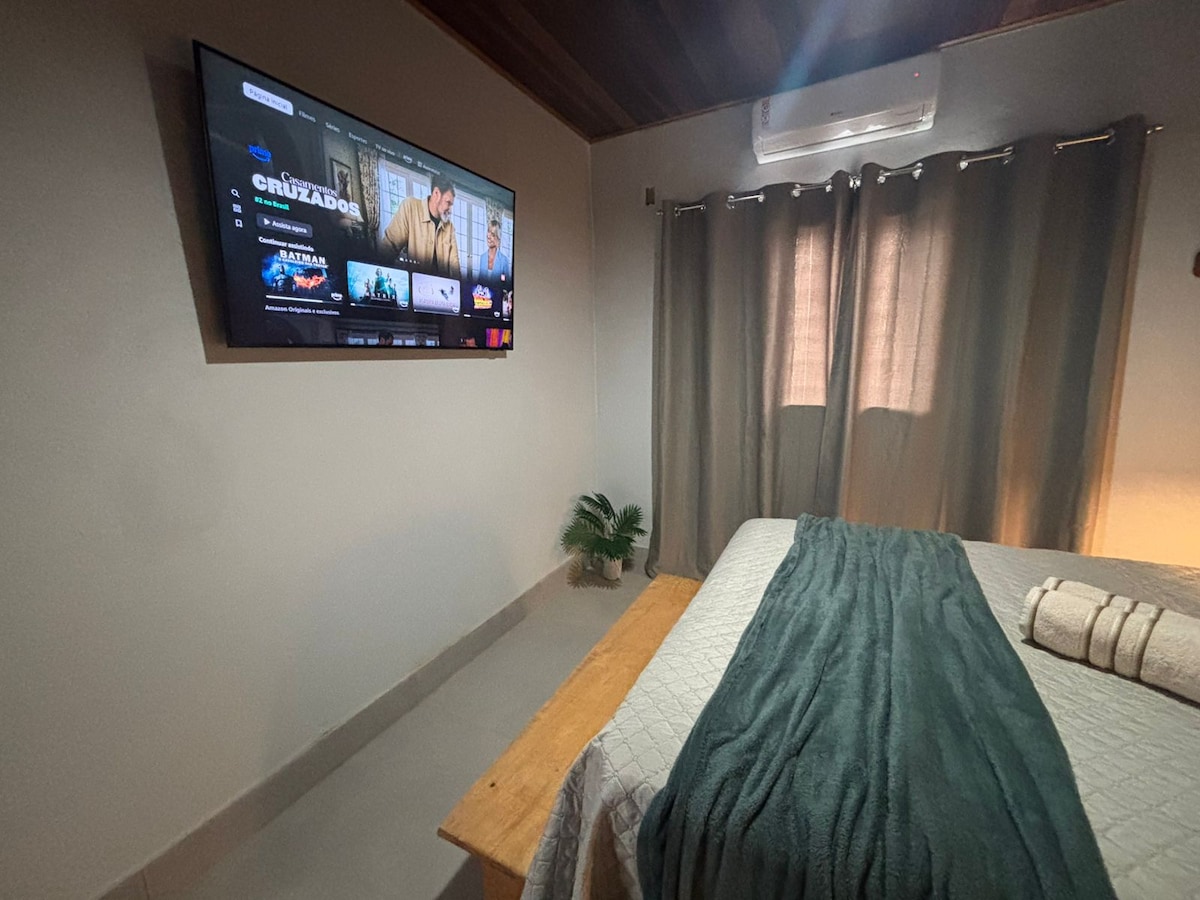 Retreat in Chapada, close to downtown, ideal for relaxing in comfort and privacy. • Self check-in, at your own time (from check-in time) • Private garage • Fast Wi-Fi • Kitchen equipped for preparing your meals. • Split Air 18,000 BTUs: air-conditioned environment in minutes. • 43” Smart TV - Amazon Prime included + apps like Netflix, Globoplay - login to your account). • Alexa: ask for your favorite songs Note: There are no open TV channels, only streaming
