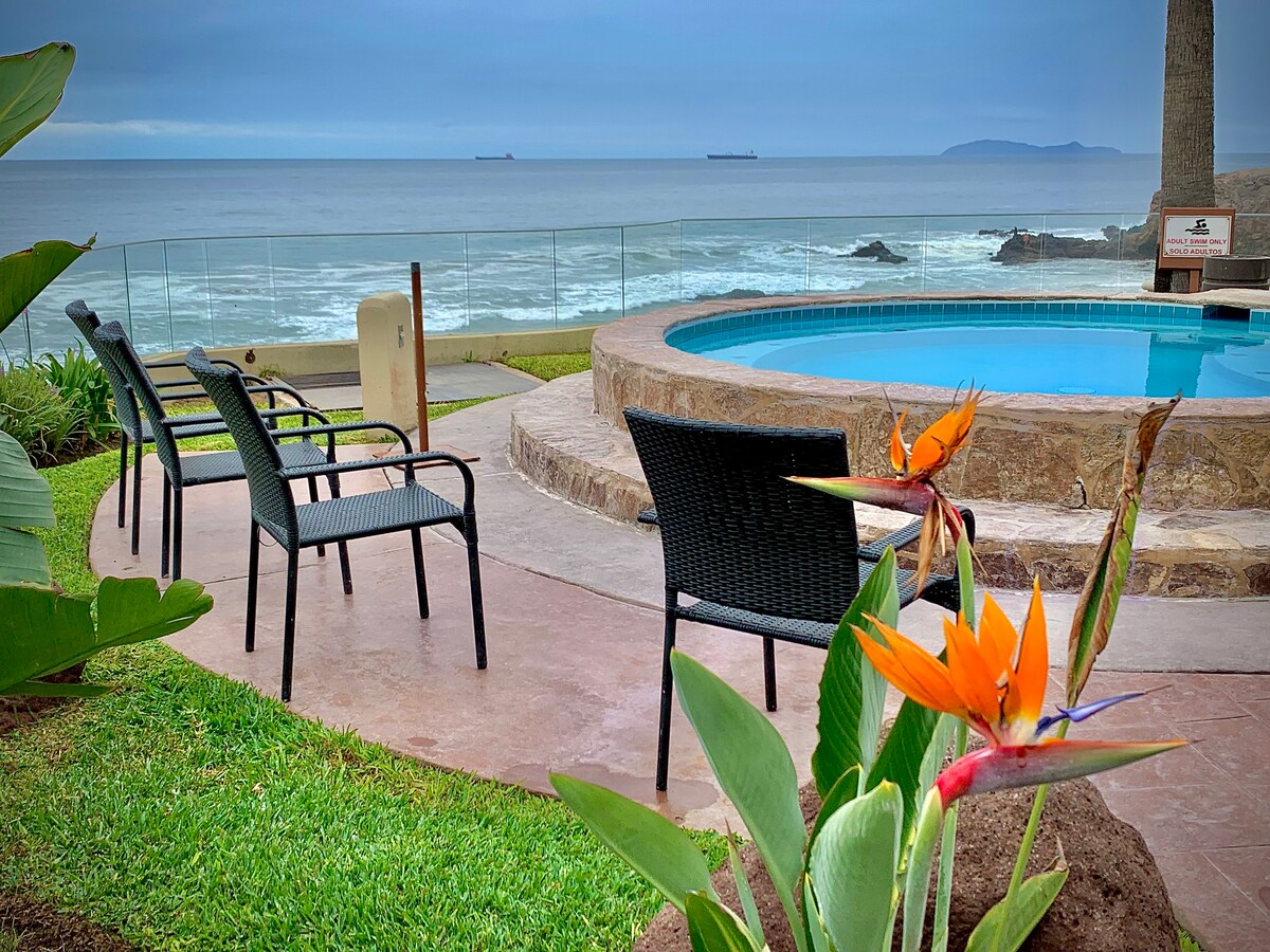 Freshly remodeled & decorated oceanfront condo in Rosarito/Calafia, with EXCLUSIVE (1 of 5) walk-out access to terrace level heated pool. Unreal view! Please review "Other Details to Note" section before booking to ensure our home aligns with your needs & expectations. The third level pool is strictly off limits to all guests under age 18. No pets. Onsite amenities include - Multiple pools and Jacuzzis (some with private cabanas) - Tennis Court - Sand volleyball court + So much more….