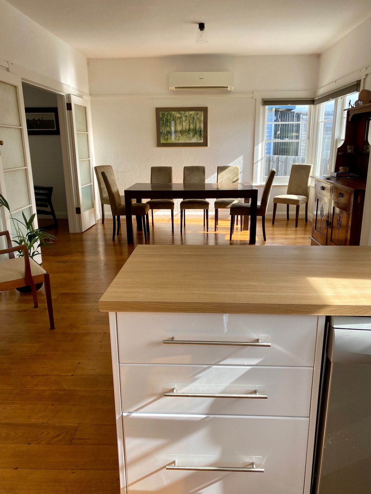 Seaview is a renovated three bedroom federation home with an architecturally designed extension in central Hobart. The house is spacious and surrounded by verandahs. It has stunning views of Mount Wellington, the city of Hobart and beyond to the Derwent River. It is a seven minute drive to the waterfront, Salamanca or North Hobart. Seaview has been thoughtfully styled with a mix of antique and modern furniture to blend the federation home and Japanese inspired extension. It is a unique property.