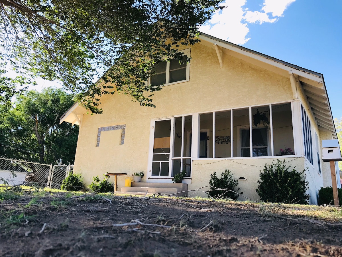 c. 1800s home. Pet Friendly $55 Fee with a fee! 2 queens + queen pull out couch, 1 bath/kitchen/laundry Antiques in home, including pillows Please treat antiques with care Free Roku TV channels Bible on table! We are Christians Absolutely: NO: Drugs/Vaping/Alcohol/Weapons or Parties Exterminated Regularly-NM bugs Relatively fast internet *OUTDOOR CAMERAS guest Access 24/7 Instructions Posted Inside NM is "windy/dusty" there's always "wind/dust" even inside. Rules inside
